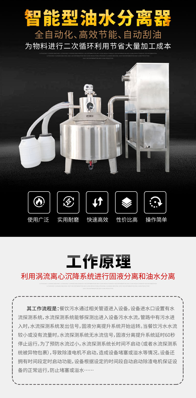 5、自動油水分離功能,渦流離心分離技術:先進渦流離心技術,快速油/水分子雙向分離;