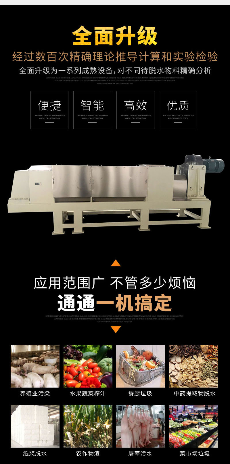 由于待脫水物料種類繁多,不同物料的含水率、分子水比例、粘度、纖維含量、吸水性、韌性、有機物或無機物等等數據各有不同,我公司工程師會根據每一位客戶提供的待脫水的物料進行分析,計算出適用于該物料的參數,制作出適合的設備,將物理壓榨作用利用到**,降低擠出物料含水率。