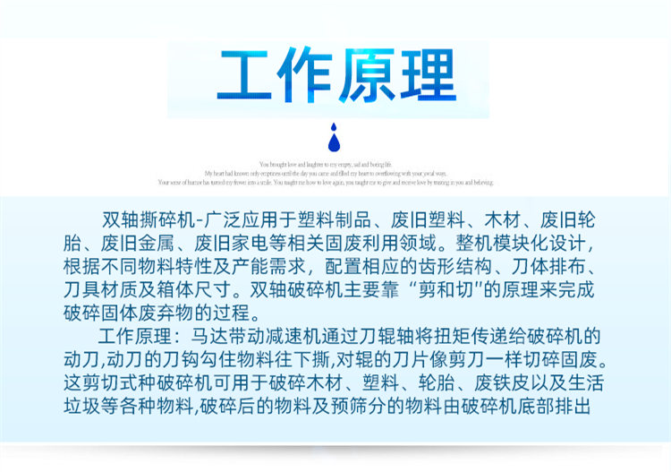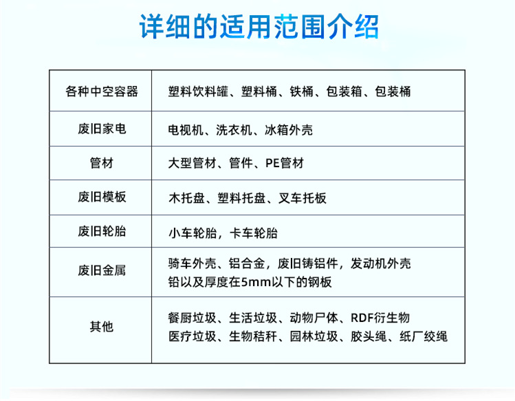 雙軸撕碎機(jī)-廣泛應(yīng)用于塑料制品、廢舊塑料、木材、廢舊輪胎、廢舊金屬、廢舊家電等相關(guān)固廢利用領(lǐng)域。整機(jī)模塊化設(shè)計(jì),根據(jù)不同物料特性及產(chǎn)能需求,配置相應(yīng)的齒形結(jié)構(gòu)、刀體排布、刀具材質(zhì)及箱體尺寸。雙軸破碎機(jī)主要靠“剪和切"的原理來完成破碎固體廢棄物的過程。