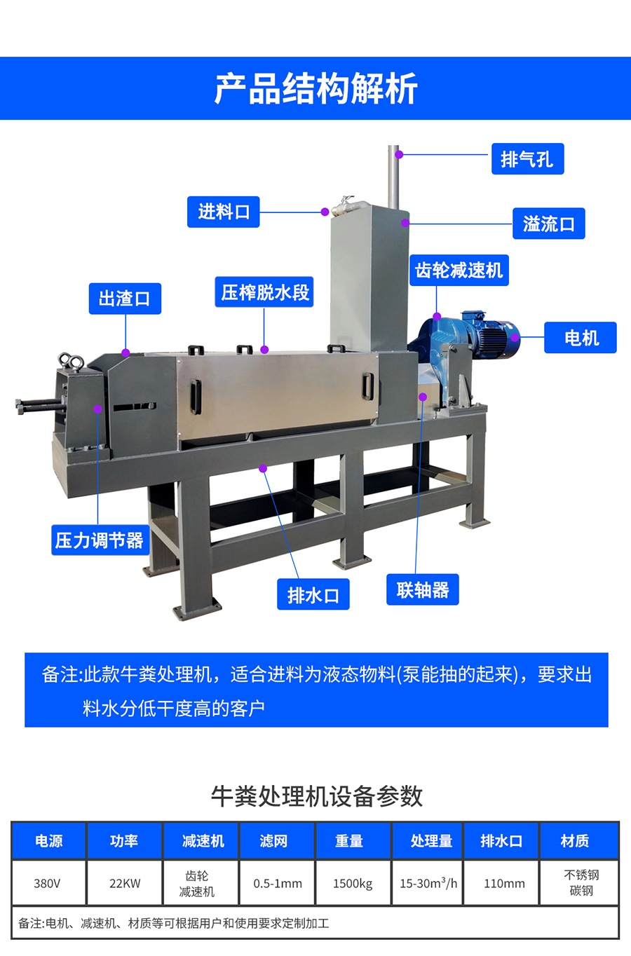 ?固液分離?:經(jīng)過預(yù)處理的牛糞進(jìn)入處理機(jī)主體后,會經(jīng)歷固液分離的過程。這一過程可能基于機(jī)械擠壓、旋轉(zhuǎn)篩網(wǎng)等多種原理,旨在將牛糞中的固體和液體成分有效分離。